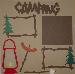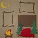 12 x 12 tan background, die cut "camping" title, lantern, hot dog on stick, and marshmallow on stick die cuts, 2 twig and pine tree frames and 1 brown repositionable frame