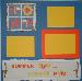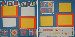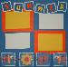 | 12 x 12 blue background, "summer" letters on blue blocks matted with white blocks, clipart of fish, sunflower, flip flops strung together with rope, 2 white and 2 yellow/orange repositionable photo mats |