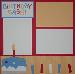 | 12 x 12 red background, 2 tone yellow stripe border with deckle edge, "happy birthday!" title on white with blue mat, 5 candles, blue birthday present with white tissue paper, white ribbon and red heart with 2 mini buttons, 1 |