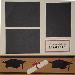 | 12 x 12 cream background, black ribbon, 2 "love" embossed squares, 1 square embossed with a wedding cake design, white with black border "on this day" title, 3 white with black border repositionable photo mats |